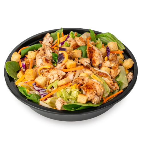 Fried or Grilled Chicken on a bed of mixed salad greens, cheese, & croutons
